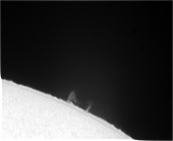 Die unten gezeigten Detailaufnahmen der Sonne wurden ebenfalls mit einem Coronado SM 40 gemacht, jedoch kam hier eine Webcam zum Einsatz die mit einer 2-fach Barlowlinse bestückt war.